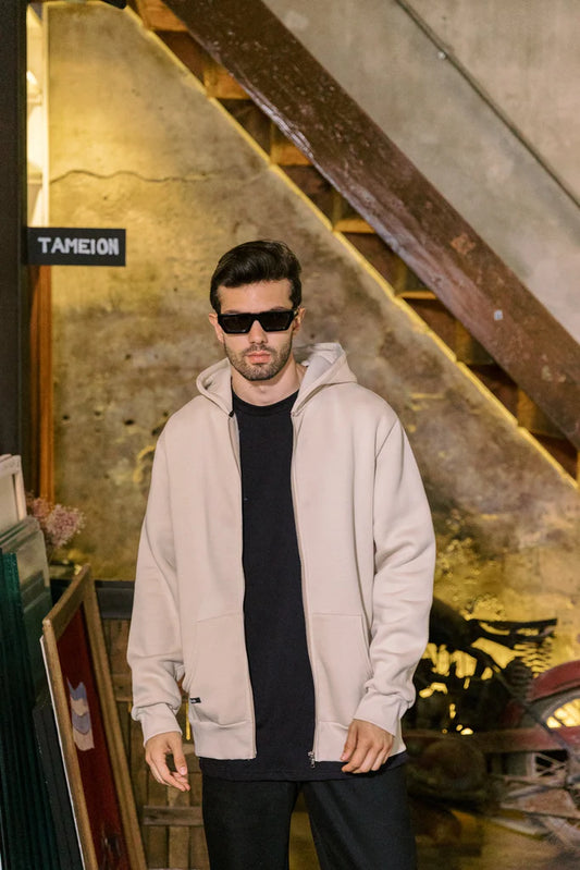 Kiub Zipper Hoodie Beige